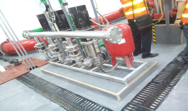 4)消防泵安装:基础验收、螺栓预埋、泵安装需在一条线上。软接、阀门、立管等需在一条线上。压力表设置、泄水阀设置(持压阀)应按图施工。