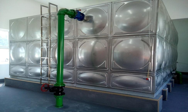 6)生活水箱:一般为不锈钢材质,食品级304、现场检查,可用磁铁检验(不吸为好材料)内拉筋、人孔、梯子、进出口、溢流管、排污管按图施工(人孔枷锁)并做满水试验,基础高于50cm水箱下设置10#镀锌槽钢,详见图集: