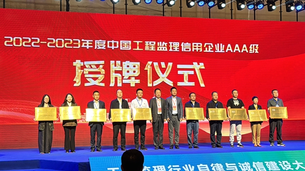 大会宣读了《中国工程监理行业自律公约》并举行了公约发布仪式,向全行业发出了《中国工程监理行业自律倡议书》;大会还公布了2022-2023年度中国建设监理协会单位会员信用评价结果,并为取得中国工程监理信用企业AAA级的80家企业代表举行了授牌仪式,我杏彩首页位列其中,获此殊荣。