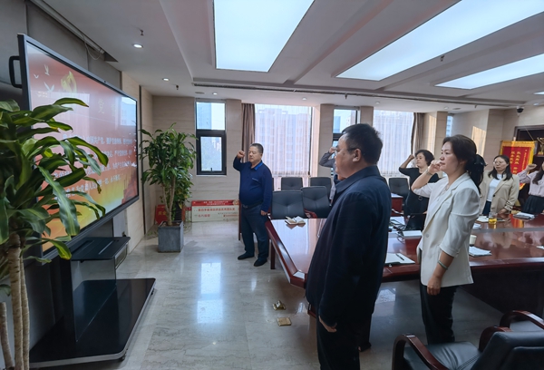 “我志愿加入中国共产党,拥护党的纲领,遵守党的章程,履行党员义务,执行党的决定……随时准备为党和人民牺牲一切,永不叛党。”支部大会最后,参会党员全体起立,庄严地举起右手,在支部书记李三虎的领誓下共同宣誓,重温入党誓词,再一次用铮铮誓言诠释入党初心,砥砺奋斗精神。