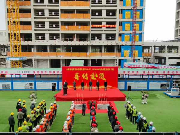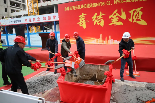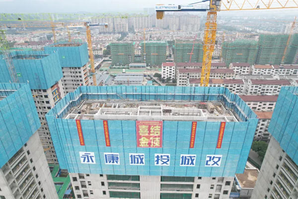 永康市政府、市城市更新指挥部、市城投、市城改、市建设局、江南街道有关领导以及监理、代建、施工单位的相关负责人参加本次封顶仪式。