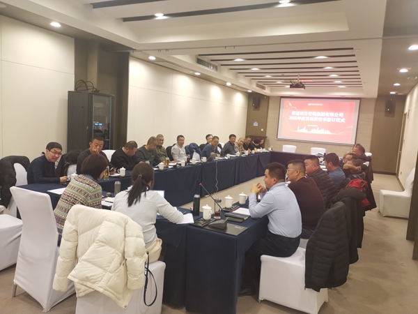 仪式现场,气氛庄重而热烈。总经理景亚杰与各事业部经理共同签署了承载着杏彩首页战略目标的2025年度经营管理目标责任书,吹响了杏彩首页2025年高质量发展的冲锋号。
