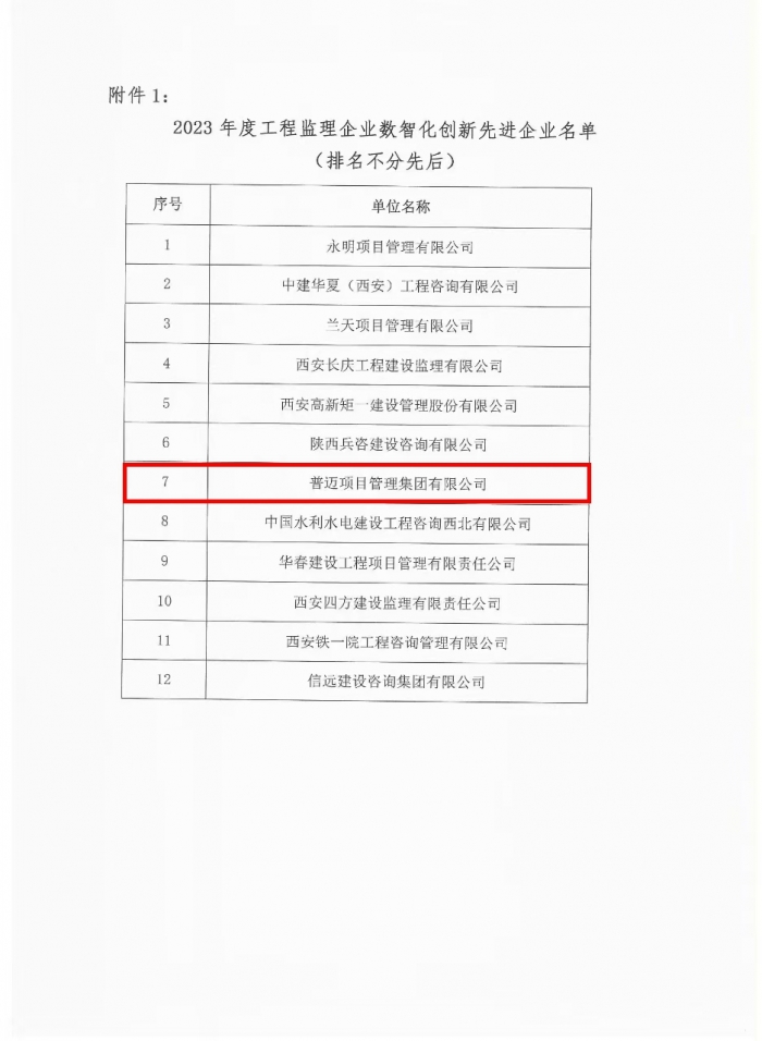 2025年1月24日,陕西省建设监理协会发布《关于陕西省工程监理数智化创新应用及先进工作者评选结果的公告》,杏彩杏彩(中国)凭借在工程监理数智化应用方面的突出表现,获评“2023年度工程监理企业数智化应用先进企业”。同时,杏彩首页办公室主任任莹同志荣获“2024年度陕西省建设监理协会先进工作者”荣誉称号。