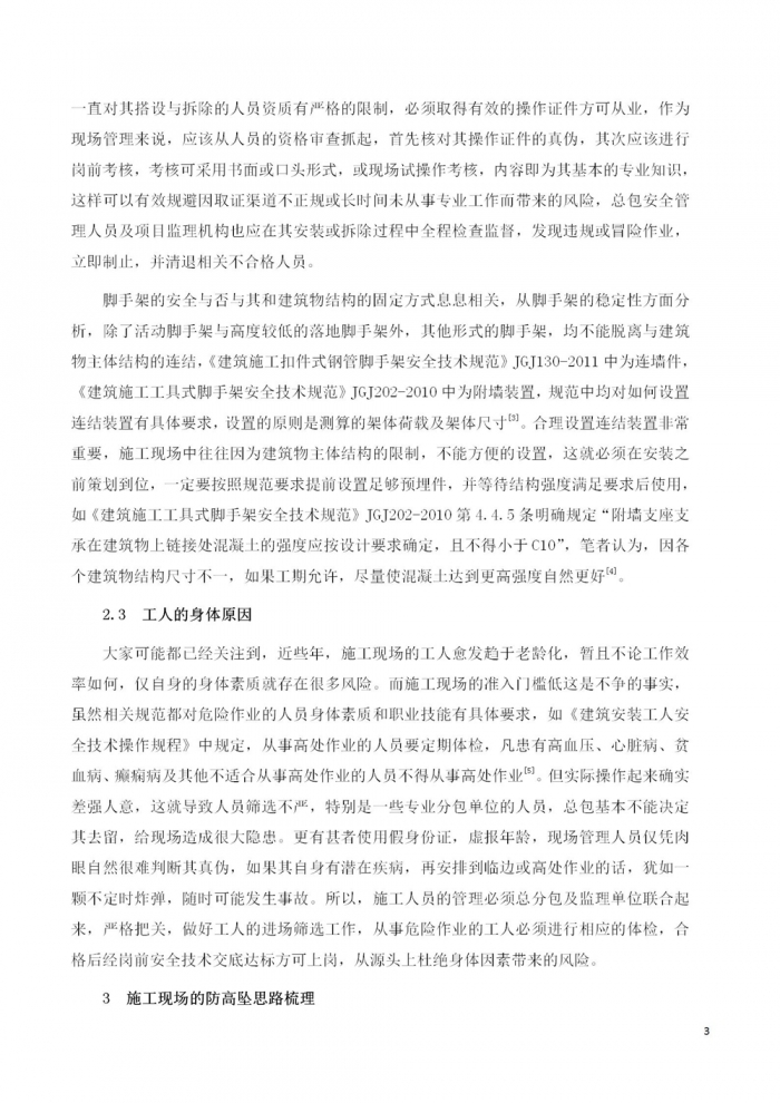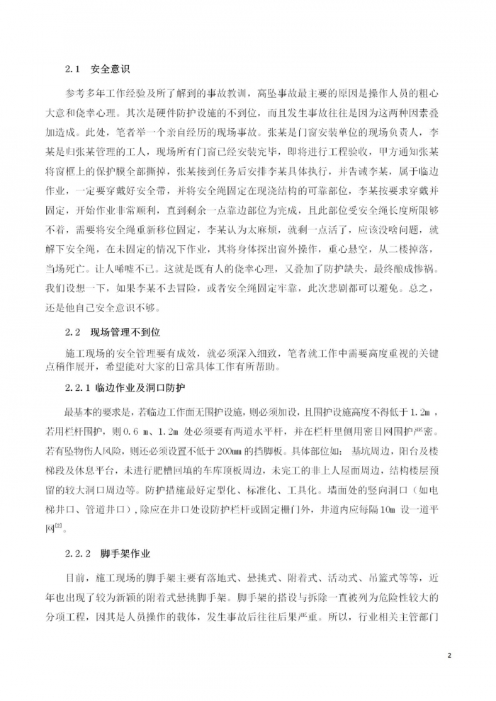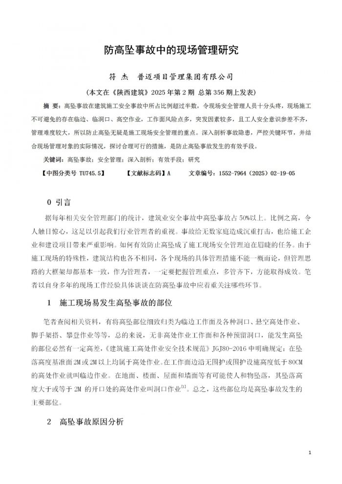 防高坠事故中的现场管理研究