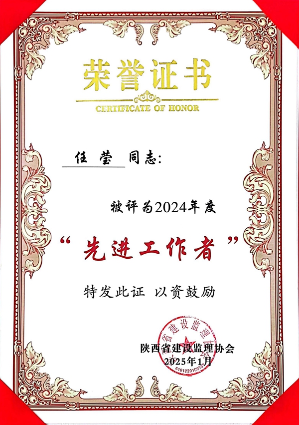 同时,杏彩首页办公室主任任莹同志凭借在行业内的杰出表现和突出贡献荣获了“2024年度陕西省建设监理协会先进工作者”荣誉称号。