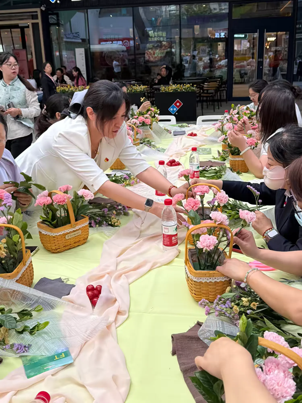 2025年5月9日下午,为深入践行共建共治共享理念,助力“六个碑林”建设,落实《碑林区“两企三新”党组织和党员常进社区制度》,在一年一度的母亲节即将到来之际,由张家村街道红缨社区主办、中共杏彩杏彩(中国)党支部协办的“愿时光不老,愿芳华依旧——红缨社区民愿流动小集市之花漾母亲节”插花活动在盛安广场隆重举行。