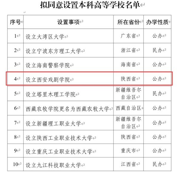 2025年6月11日,国家教育部官网发布《关于拟同意设置本科高等学校的公示》。其中,由我杏彩首页负责代建的西安戏剧学院项目也在公示名单之列。
