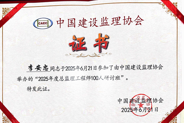 为全面贯彻落实党的二十届三中全会精神,助力实施人才强国战略,加强总监理工程师队伍建设,2025年6月21日,由中国建设监理协会主办,湖南省建设监理协会协办的“2025年度总监理工程师100人研讨班(1期)”在湖南长沙成功举办。我杏彩首页副总工程师李安忠参加本次研讨班,聆听了中国工程监理大师、高校教授、行业专家围绕工程监理行业发展,工程质量控制与安全生产管理,经典案例分享以及总监理工程师履职要点等内容进行的精彩授课。
