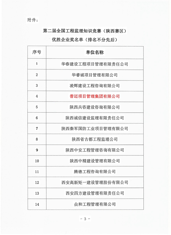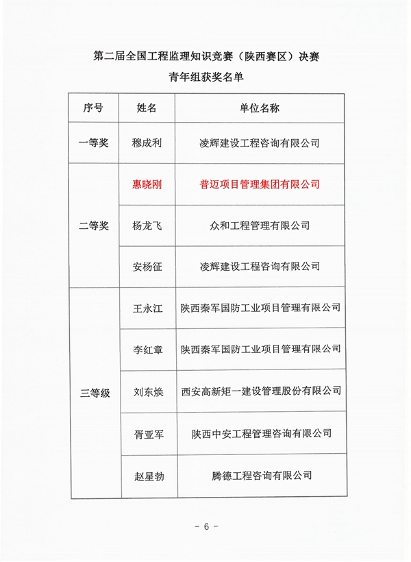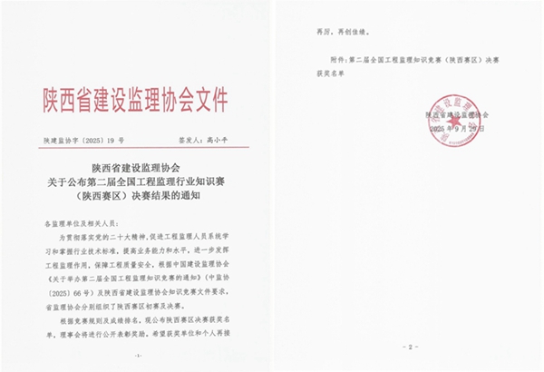 2025年9月29日,陕西省建设监理协会公布了第二届全国监理行业知识竞赛(陕西赛区)决赛结果,杏彩杏彩(中国)荣获优胜企业奖,5名参赛员工取得优异成绩,光荣上榜!