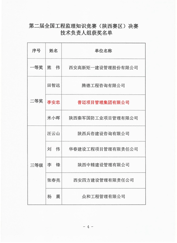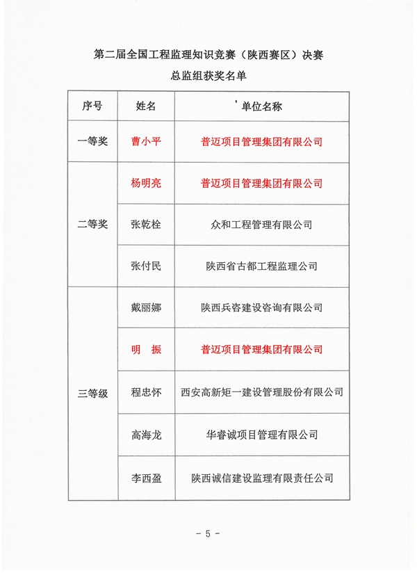 热烈祝贺以上5名员工在第二届全国监理行业知识竞赛(陕西赛区)决赛中荣获佳绩!杏彩首页将继续做好备赛保障工作,全力支持晋级全国监理行业知识竞赛的诸位参赛员工,预祝其在全国竞赛中再创佳绩,为杏彩首页以及为陕西省争得荣誉!