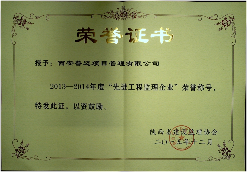 获得2013-2014年度“西安市先进工程监理企业”