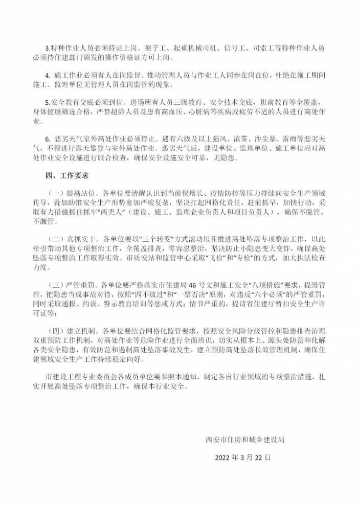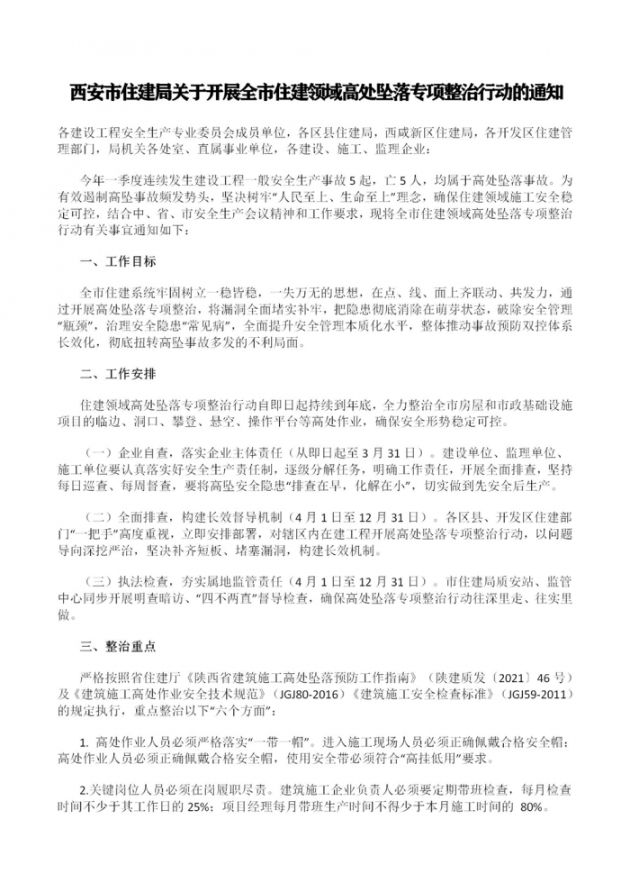 西安市住建局关于开展全市住建领域高处坠落专项整治行动的通知