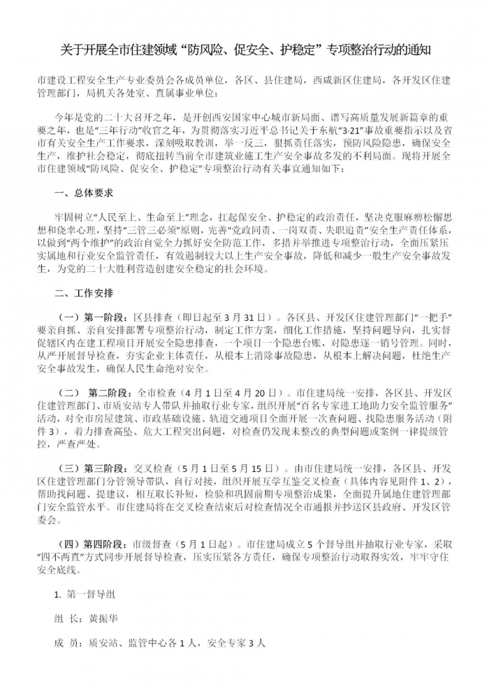 西安市住建局关于开展全市住建领域“防风险、促安全、护稳定”专项整治行动的通知