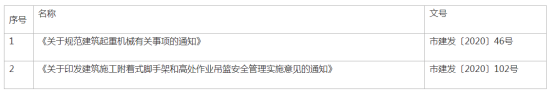 为深化贯彻落实“放管服”改革及省、市营商环境工作相关要求,根据《西安市规范性文件管理办法》相关要求,经研究,市住建局决定对《关于规范建筑起重机械有关事项的通知》(市建发〔2020〕46号)、《关于印发建筑施工附着式脚手架和高处作业吊篮安全管理实施意见的通知》(市建发〔2020〕102号)予以废止,现予以公布。自公告发布之日起两文件停止执行。